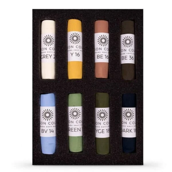 A handmade set of 8 soft pastels from Unison Colour will help you explore your creative side. The landscape set of soft pastels are specifically designed for the hues of the British landscape. From the lush valleys of South Wales to the rugged coast of Northumberland or the soft light of Cornwall. These soft pastels are designed to be an introduction set of pastels to help you become the artist you undoubtedly are. Specially chosen by John Hersey for their wide range of landscape colours to make your first foray into soft pastels an enjoyable and rewarding experience. Highly blendable and water soluble, they have a buttery texture that makes them a joy to use. Made with high quality intense pigment and manufactured in the traditional way by hand. Unison Colour have pastel making down to a fine art with this Classic 8 Soft Pastel Set for landscapes.