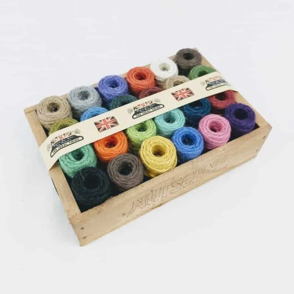 If you are struggling a little on what colour Nutscene twine will fit your needs, then how about this delightful wooden seed tray filled with mix of mini jute spools. These mini Nutscene Heritage Twine spools are still made on the original 1922 machinery in Angus, Scotland. The 24 mini jute spools come in an array of colours and in an FSC approved seed tray. They are around 2mm thick and 13 metres in length. They also make the perfect gift for a gardener or a crafter as they have a myriad of uses.