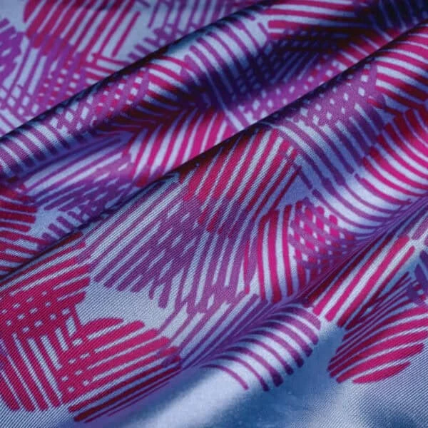 Design & Inspiration: ‘Dot Dash’ is a stylish and unique full-size silk pocket square with hand-sewn hem, made in England. It is a fresh take on a classic design held in the archives at leading silk printer Adamley Textiles, our pocket square manufacturing partner. The rich archives have been assembled over the years from Adamley’s own designs as well as from those of notable silk printers from Macclesfield’s illustrious past. The name ‘Dot Dash’ was inspired by the way the dots are made up of lines or dashes and in turn by Morse code. The design is composed of a china blue background with mauve and deep pink dots.