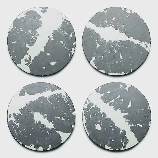 Although there is no wax involved in these unique Grey and White Splatter Concrete Coasters, they are still traditionally hand poured in the Concrete and Wax workshop in Suffolk. And have all the modern, yet rustic charm you expect from Concrete and Wax. The surface of the drinks coasters have a luxurious smooth feeling that will certainly endure. Underneath they have felt to make sure they are gentle on tables.
