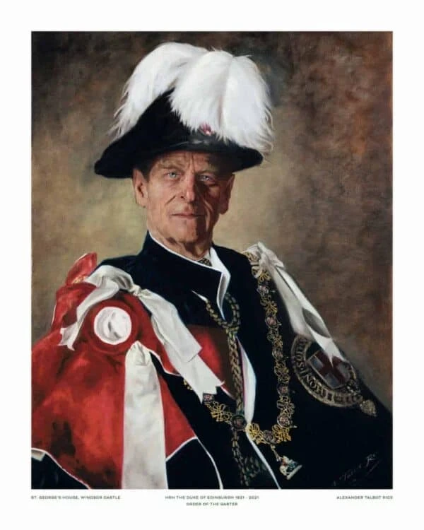 Sir Gordon Bennet is proud to have partnered with Alexander Talbot Rice to offer a limited edition run of fine art prints of his portrait of the late and revered HRH The Duke of Edinburgh. Prince Philip posed for this portrait by the celebrated British artist Alexander Talbot Rice in St Georges Chapel, Windsor Castle. Wearing his Order of the Garter robes. It has been said that the portrait has captured HRH The Duke of Edinburgh the closet. The original now takes pride of place in St George’s House, which is situated next to St George’s Chapel. And to celebrate Prince Philip’s extraordinary life and work we will be giving 10% of profits to The Duke of Edinburgh Award Scheme.