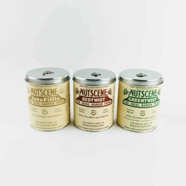 An absolute classic garden twine and a firm favourite of gardeners the world over. An iconic tin of twine should sit in every shed across the land. Made on the same machinery since 1922, with the replica labels coming from the Nutscene archives circa 1940. These spools of jute twine are perfect for more than just gardening and the Iconic Tin collection consists of 3 colours. Natural, Red and Green. Use the jute twine in floristry, to gift wrap or as originally intended to support plants and mark out growing lines. Nutscene garden twine tins are a delight to use as the internal middle spooling system make them tangle-free.