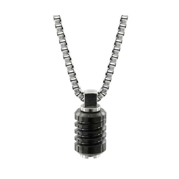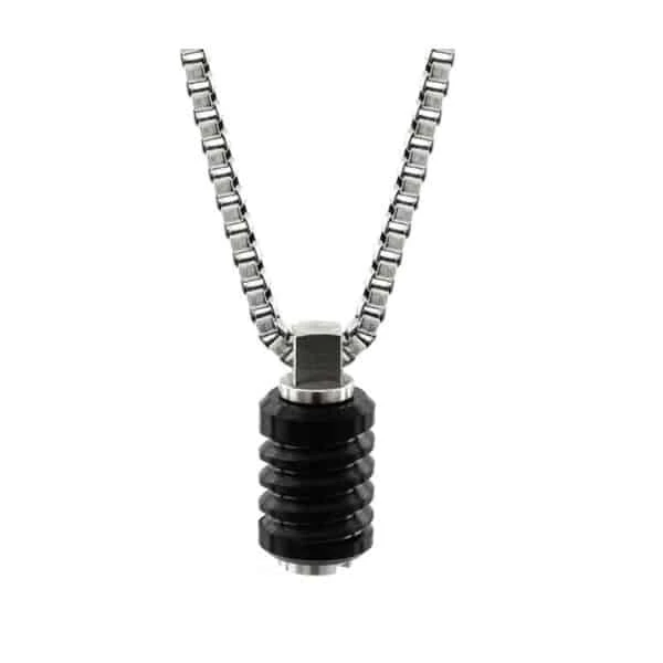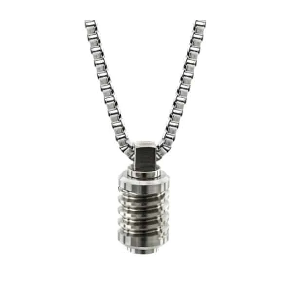 The Jet Stainless Steel Necklace features from Bailey of Sheffield features a Jet bead inspired by the turbofan engine, a type of jet engine most commonly used in aircraft propulsion. Stunning in its simplicity, this bead has beautifully angled curves which create a mesmerising spiral visual effect when rotated.
