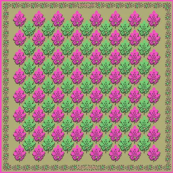 The name ‘Motif’ was inspired by the use of a repeat pattern on this pocket square. The design is composed of a camel colour background with almond green and Indian pink leaves.