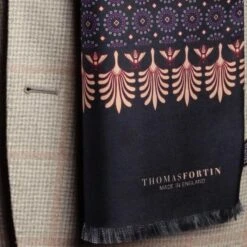 Palm And Bees Navy Silk Fringe Scarf
