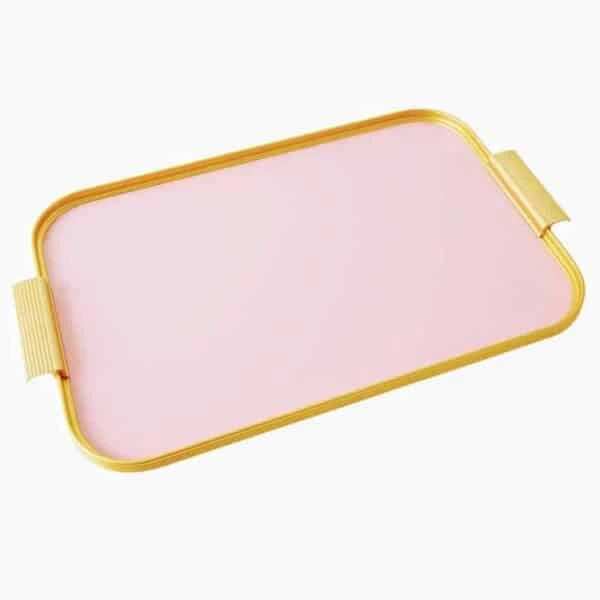 Bring glamour and style to breakfast in bed with a handcrafted breakfast tray. Or add some panache to cocktails in the garden with a cocktail tray of distinction. Using a Kaymet Rose Pink S18 Tray will do all this and more. Handcrafted in South London from high grade anodised aluminium. And then powder coated in Rose Pink to with a gold outer frame that adds a luxurious touch. The design has been in continuous production since the 1950’s and has been used by stars of the silver screen and the Royal Family. And why Kaymet Trays have been awarded the prestigious Royal Warrant. The Rose Pink serving tray is the perfect size too, measuring up at 46cm x 30cm. Serving trays never had so much class.
