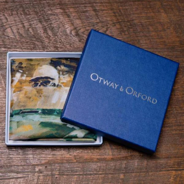 ‘Victory At Last’ is reproduced with a good balance of colour between the printed and reverse side of the silk pocket square which works perfectly with any pocket square fold. The artwork is framed by the pocket square’s pale green border and racing green hand-finished hem. The ‘Victory At Last’ silk pocket square makes an ideal gift for men especially those who are fans of classic motor racing or of Aston Martin. Inside each high-quality Otway & Orford branded gift box the pocket square has been carefully wrapped in tissue and is accompanied by a card telling the story of the artist and his artwork.